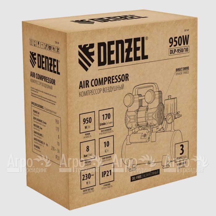Компрессор поршневой безмасляный Denzel DLP-950/10