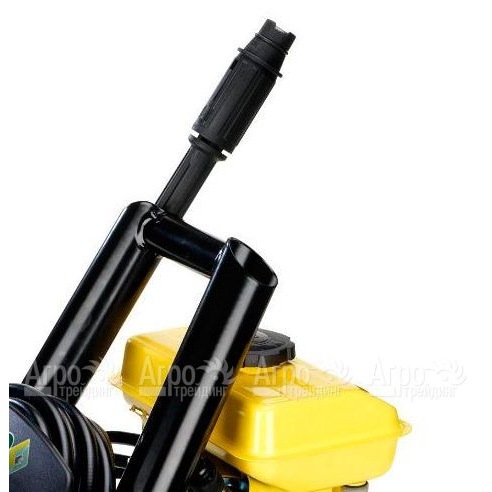 Отдельного внимания заслуживает применение специального держателя, который способствует компактному хранению шланга. Для использования химии предусмотрена пенная насадка. С целью повышения эффективности рабочего процесса используется еще несколько удобных насадок. Для удобства транспортировке по участку данная мойка оборудована надувными колесами.