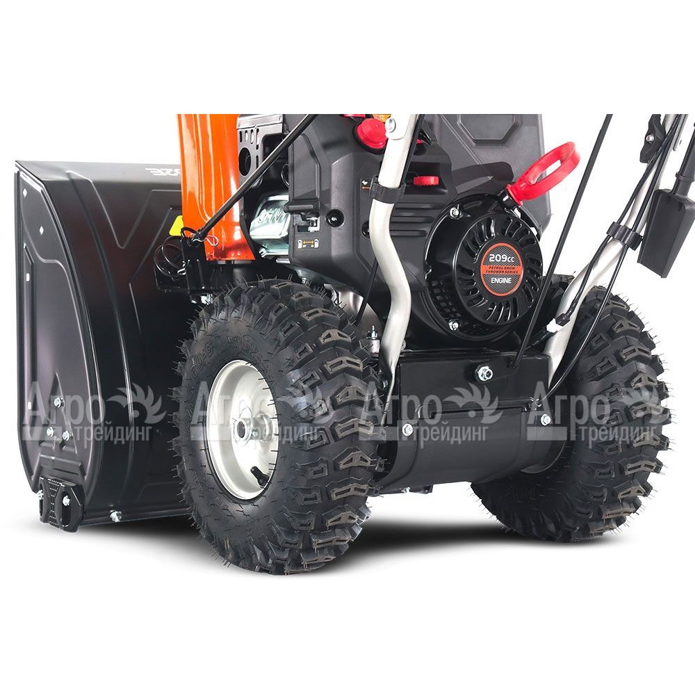 Двухсторонние опорные лыжи обеспечивают устойчивость на разных типах поверхности, а крупные колёса с отличным сцеплением позволяют легко перемещаться даже по скользкому снегу. Наличие подогрева рукояток создаёт дополнительный комфорт, особенно при длительной работе в холодных условиях.